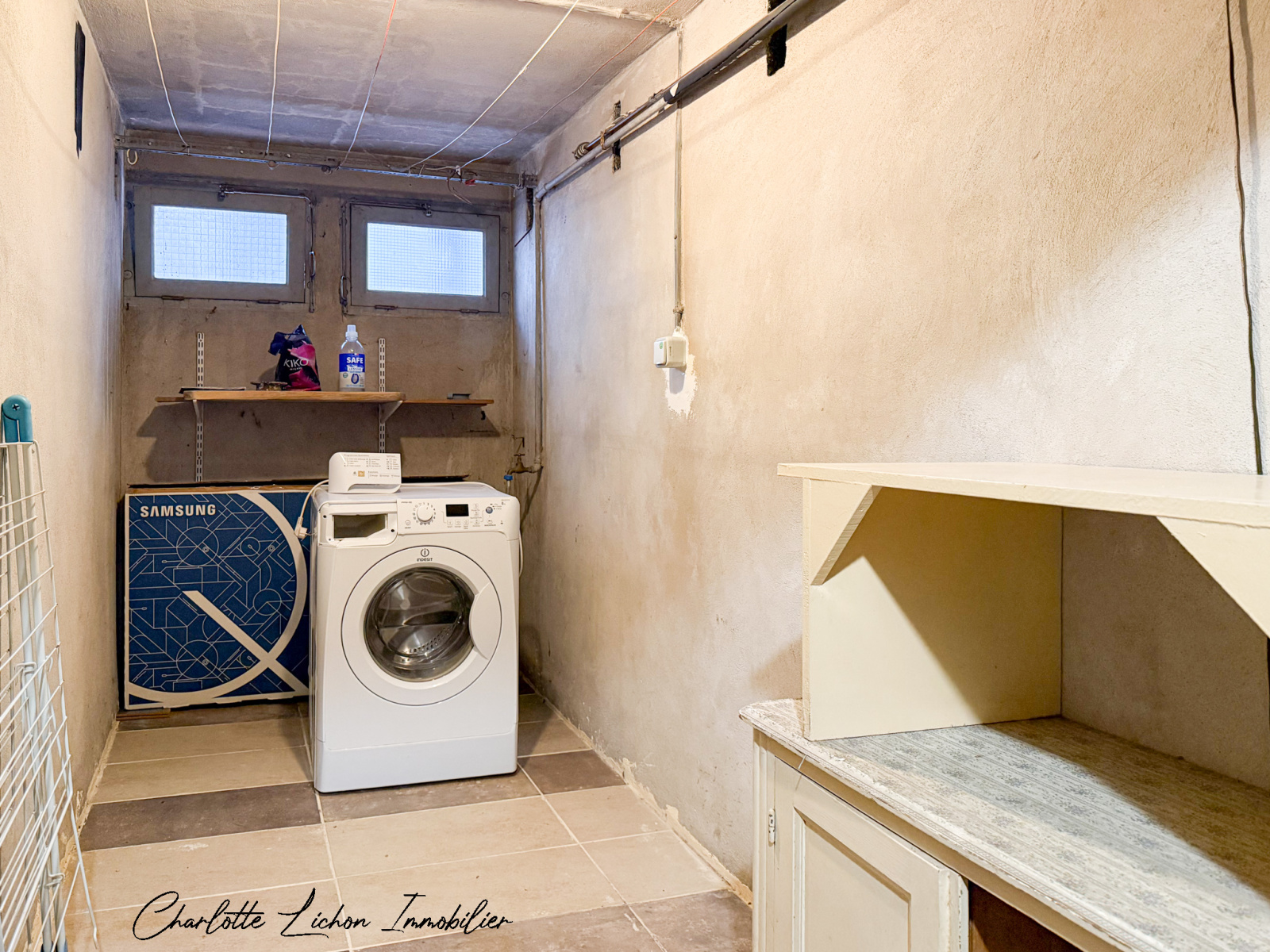 En complément, ce logement vous propose deux caves au sous-sol, dont l’une fait office de buanderie, ainsi qu'une place de stationnement dans un garage collectif fermé.