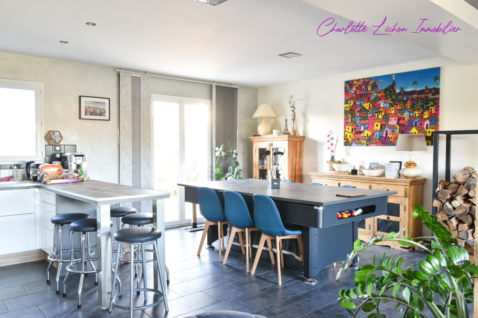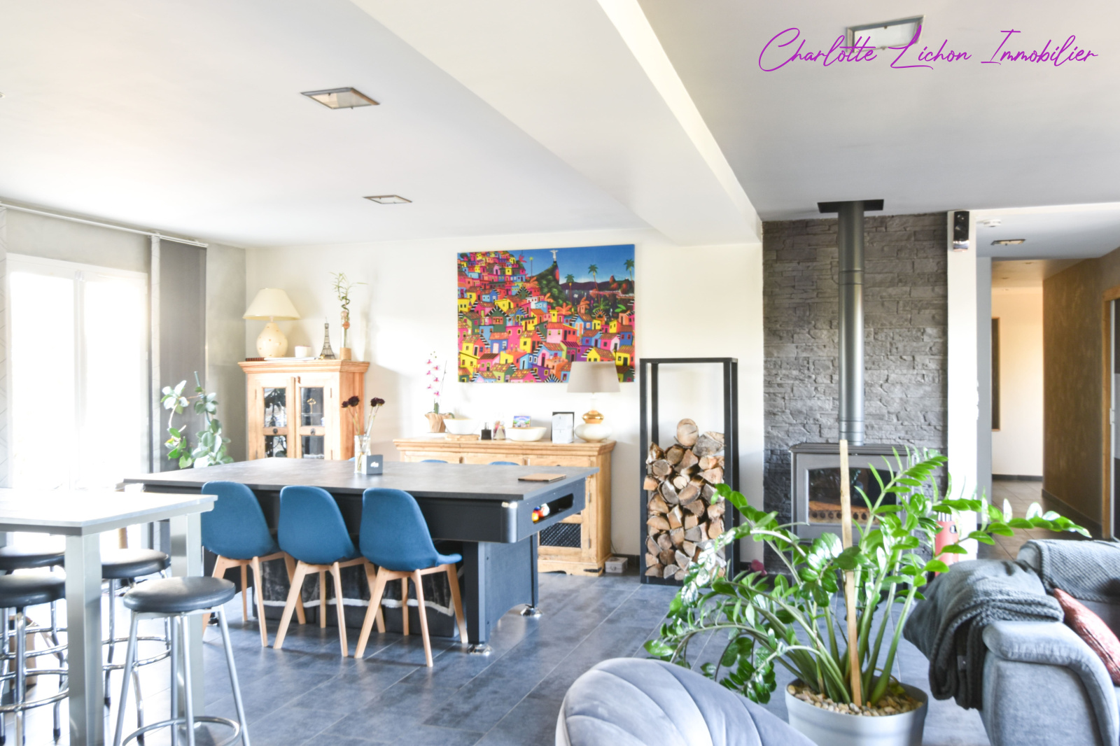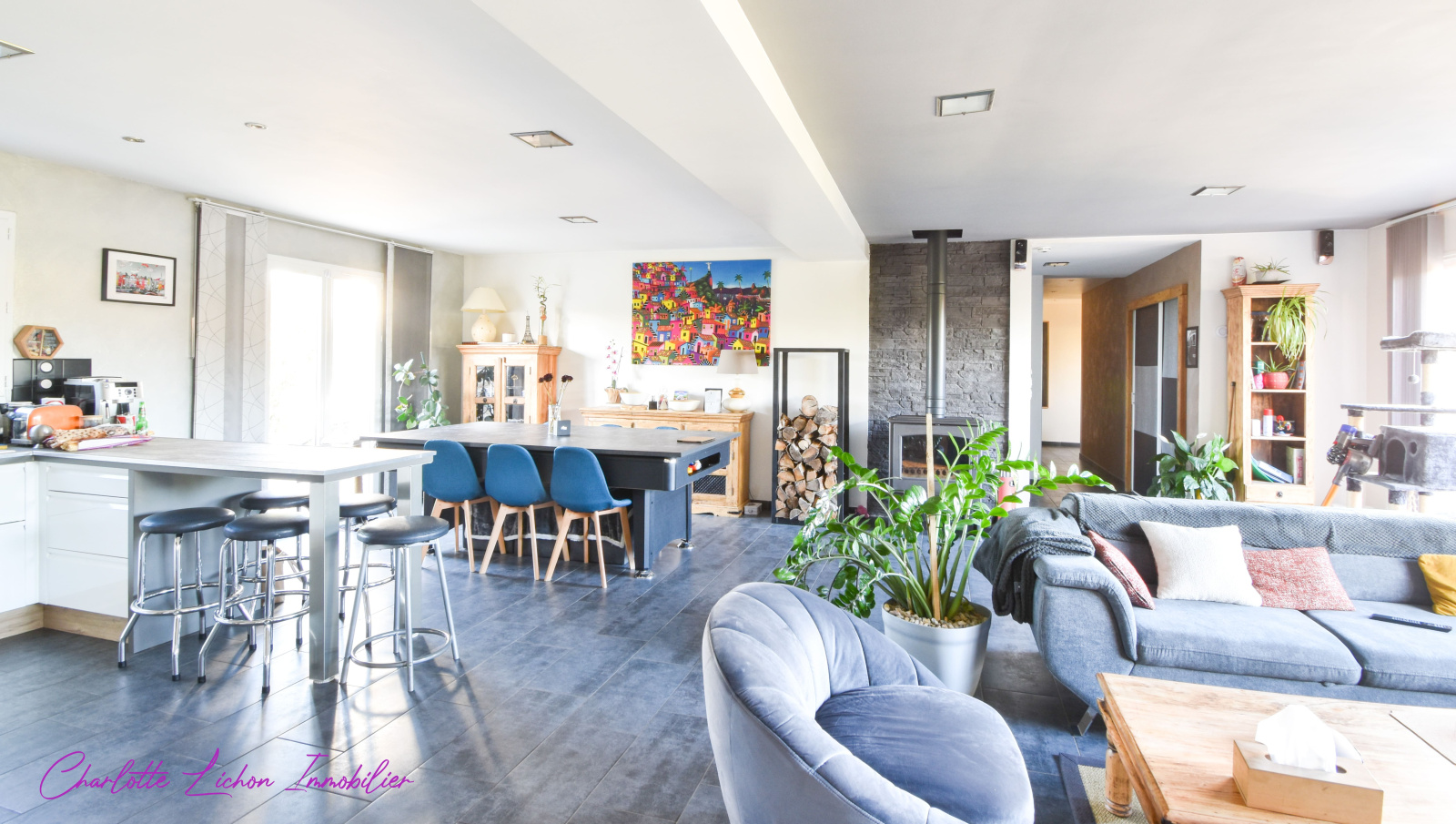 Baignée de lumière grâce à des fenêtres traversantes, vous profiterez pleinement de cet espace de vie en toute saison.