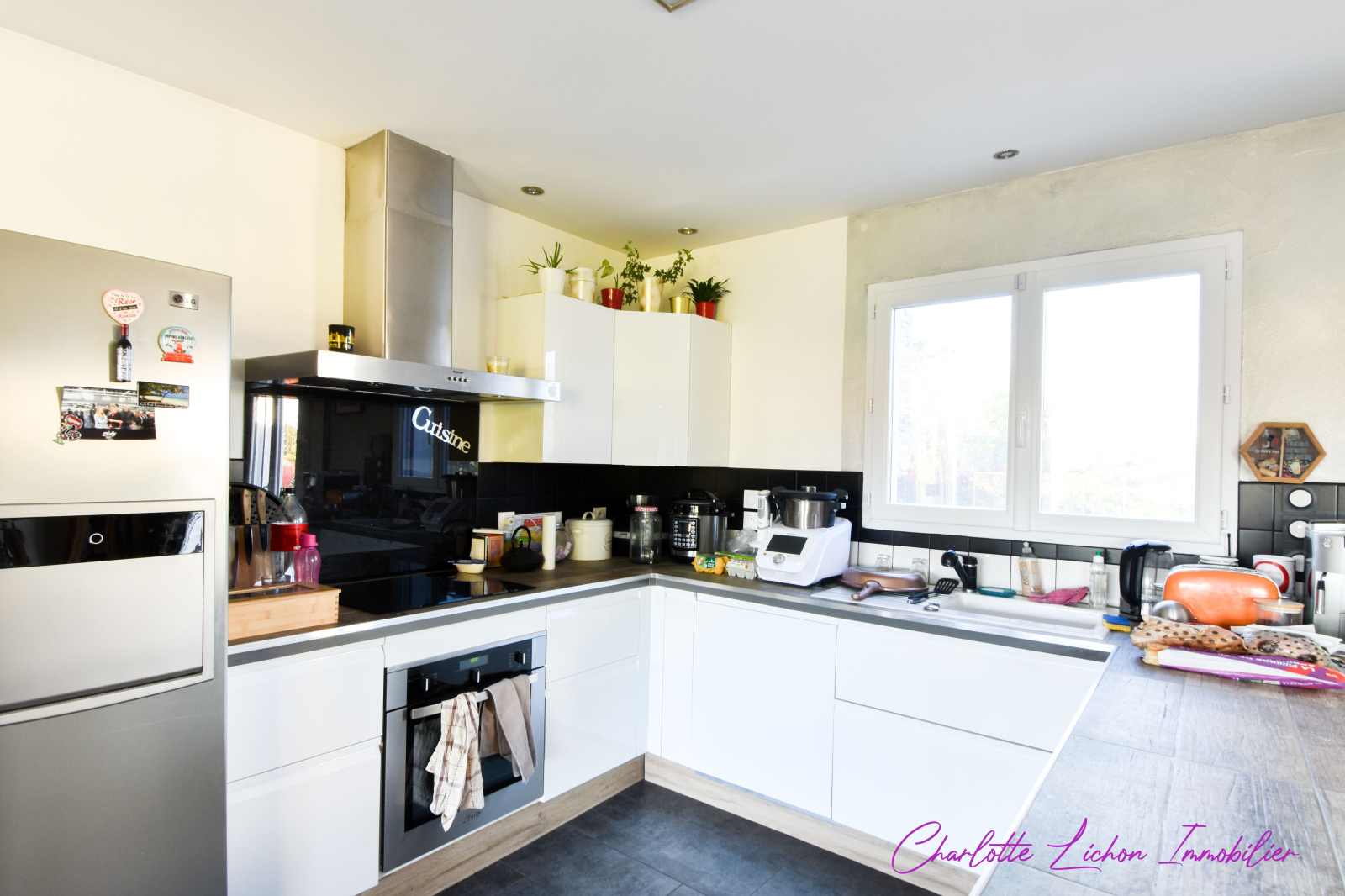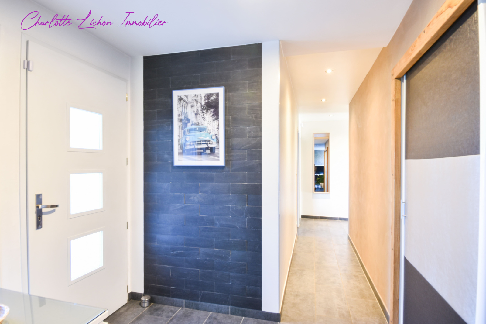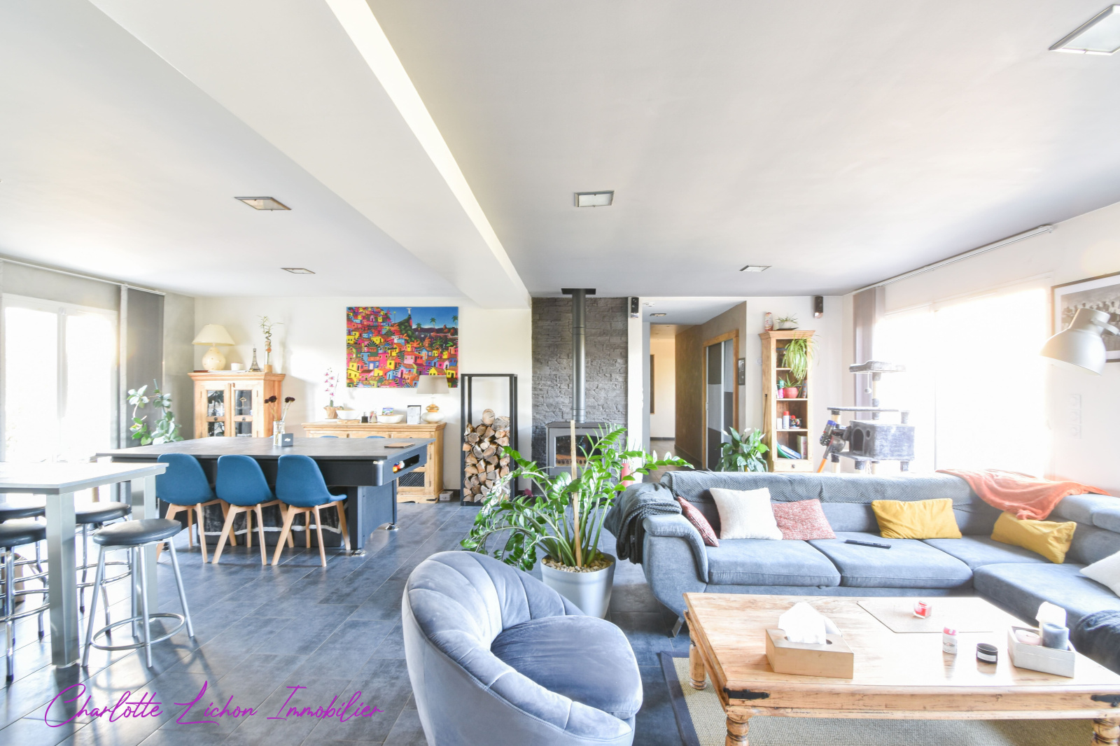 Baignée de lumière grâce à des fenêtres traversantes, vous profiterez pleinement de cet espace de vie en toute saison.