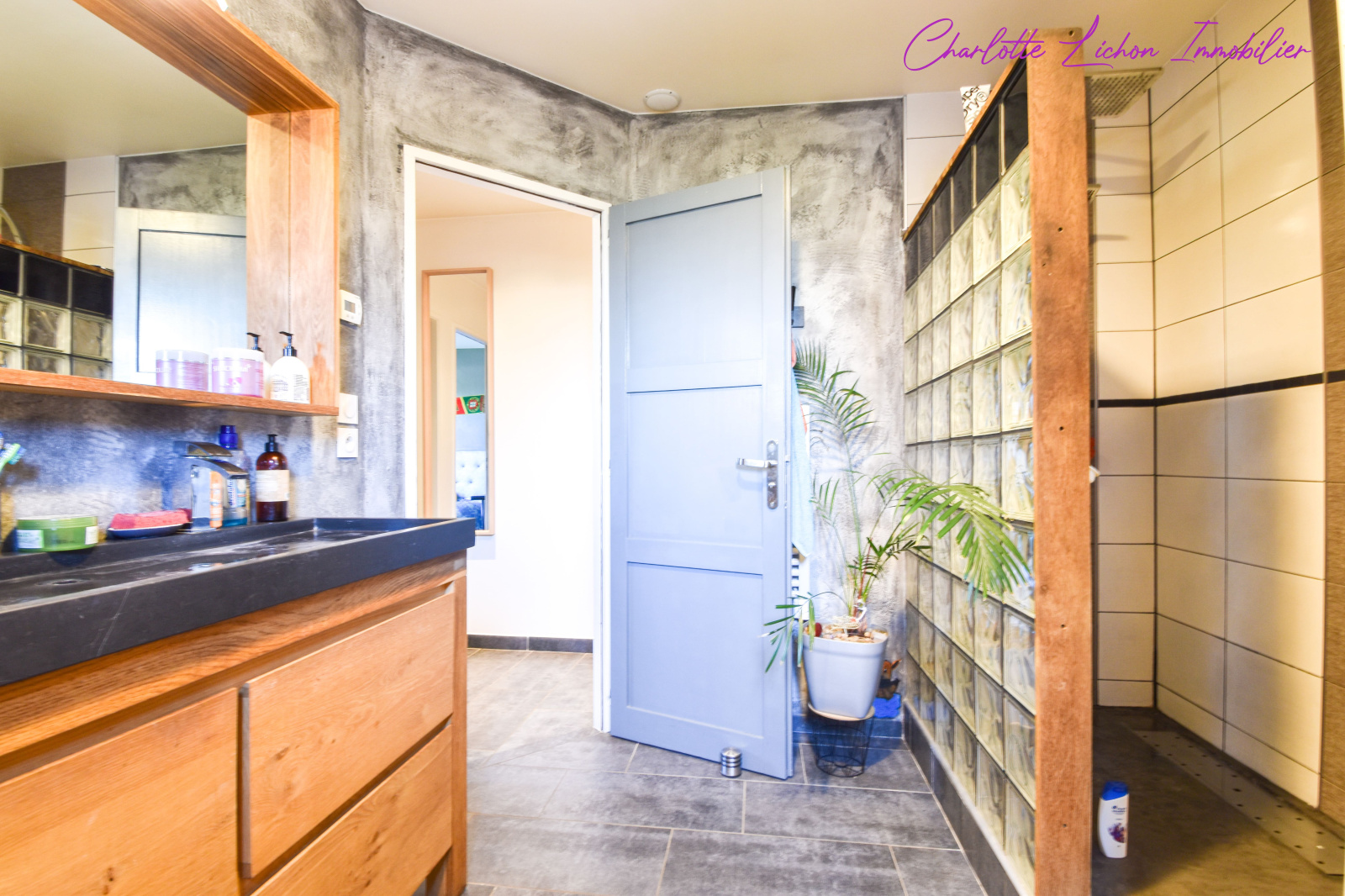 Côté nuit, vous trouverez 4 chambres (entre 11 et 13 m2) ainsi qu’une salle d’eau comprenant un placard de rangement, une douche à l’italienne ainsi qu’un meuble grande vasque.