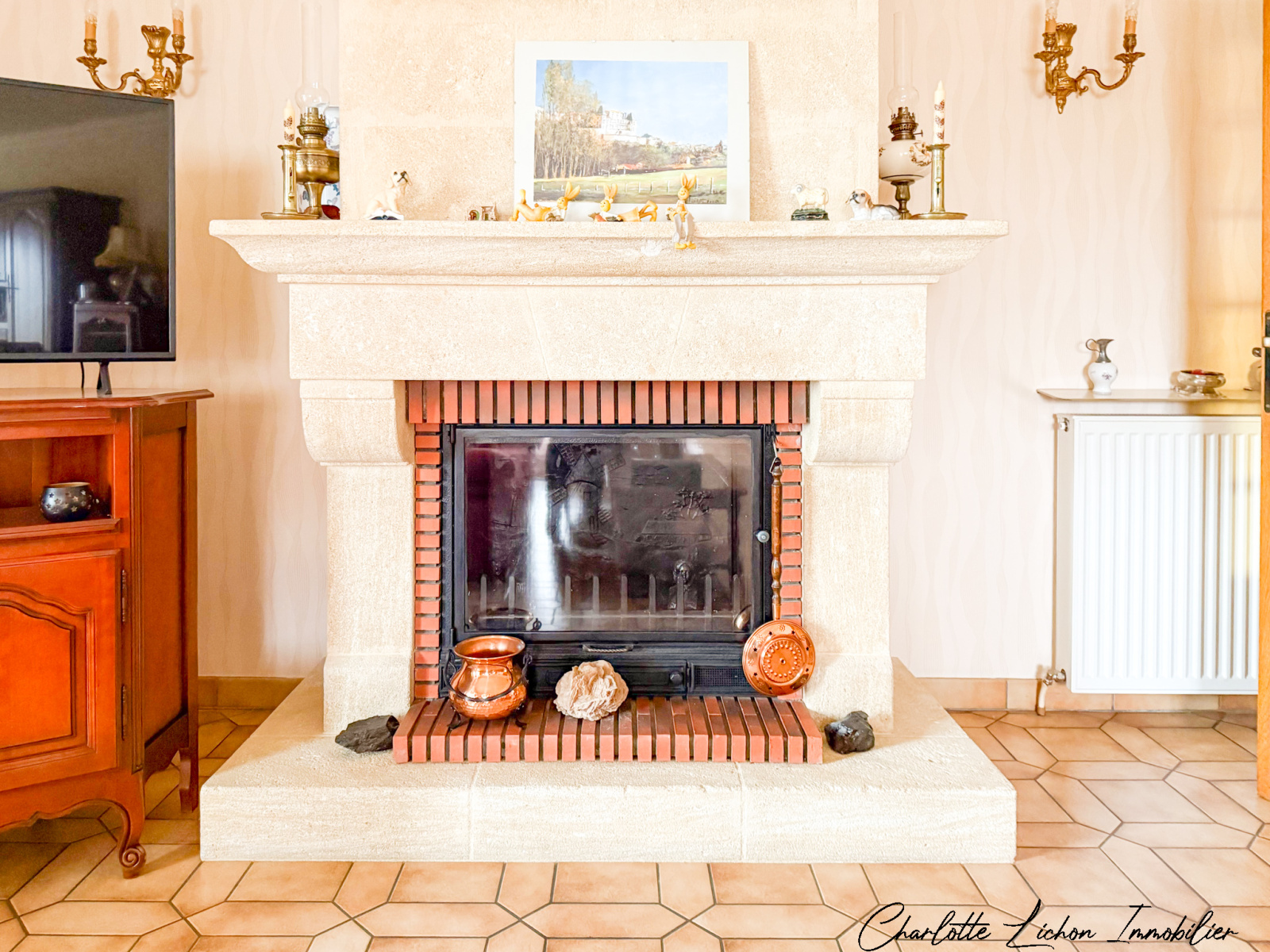 De niveau, vous trouverez une cuisine indépendante aménagée et équipée de 13 m2 , une vaste pièce de vie avec cheminée de 37 m2, une buanderie de 4.45 m2 et des toilettes indépendantes.