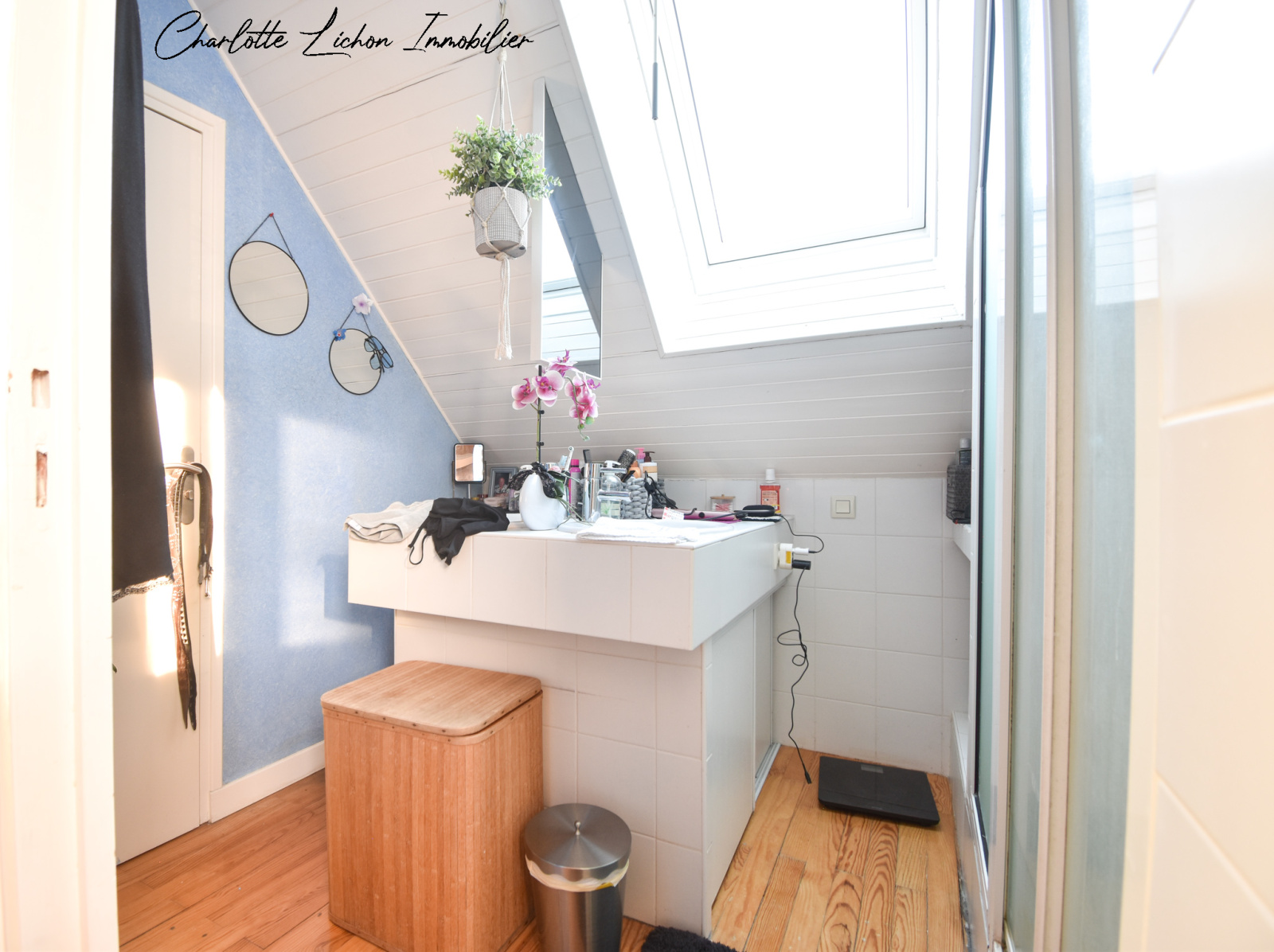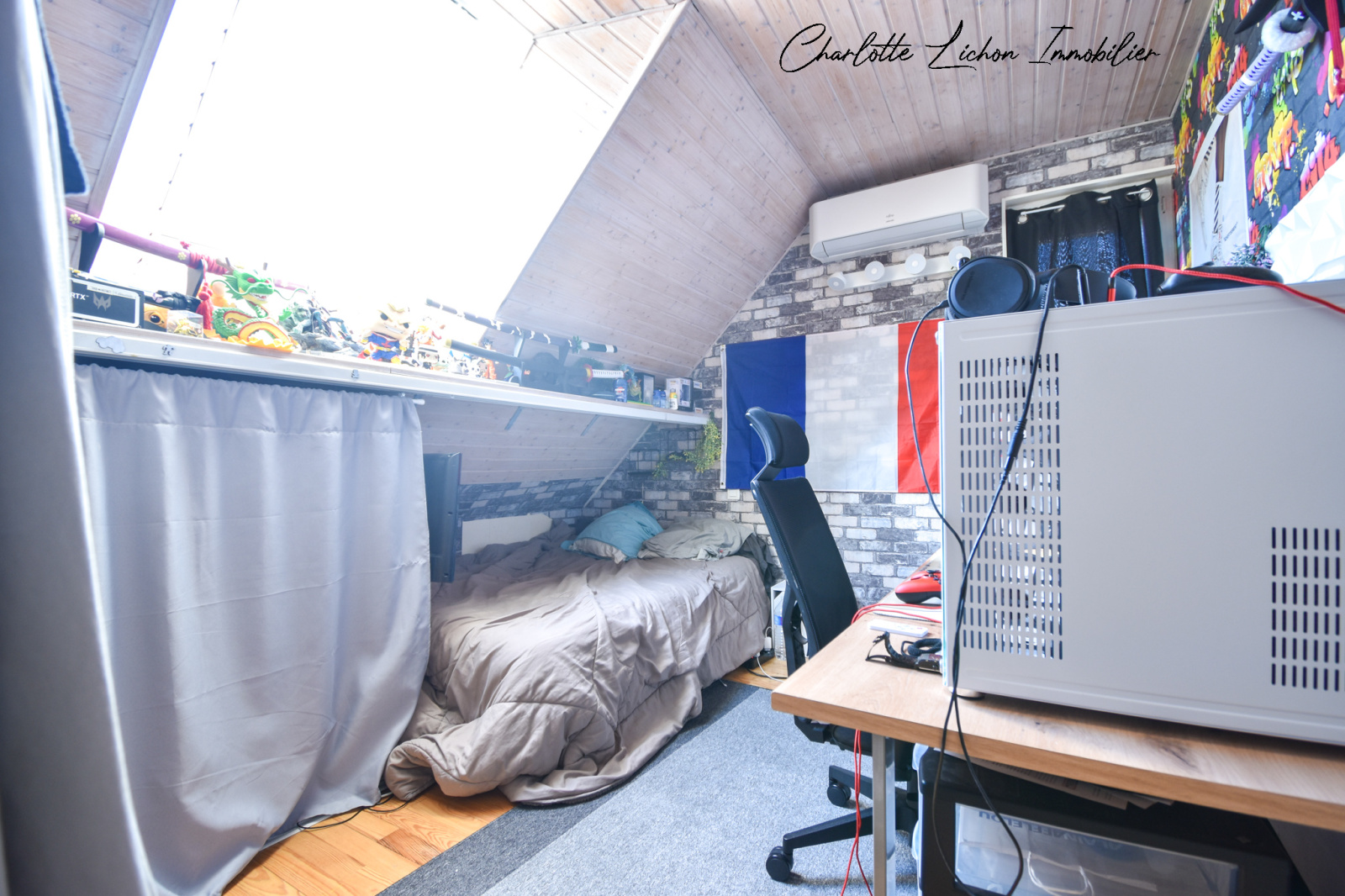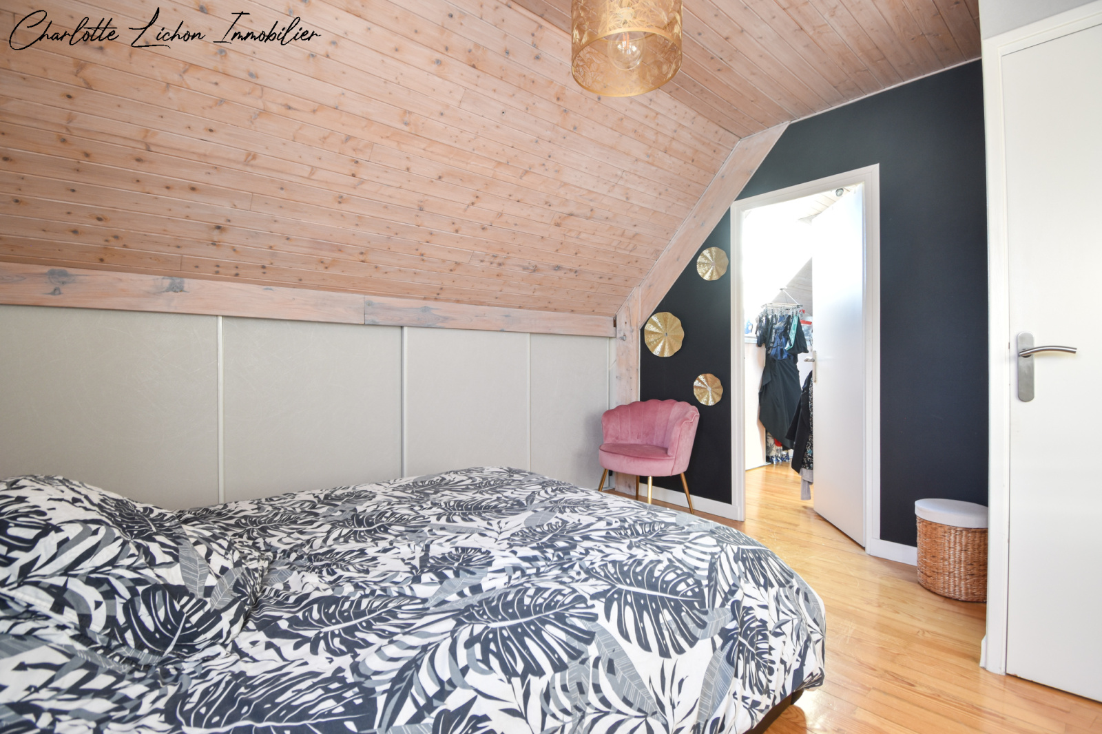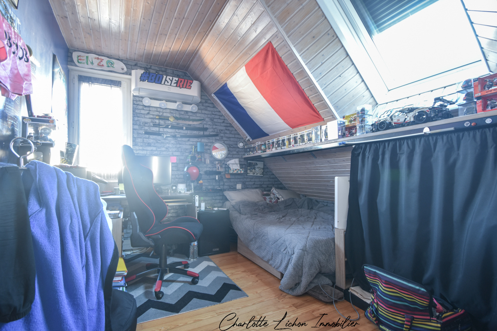 L’étage est quant à lui réservé à l’espace nuit composé d’une suite parentale comprenant une chambre de 12 m2, une salle d’eau privative de 3.61 m2 et un dressing de 5.67 m2, de 2 autres chambres de 8 et 9 m2 (12 m2 au sol) et de toilettes indépendantes.