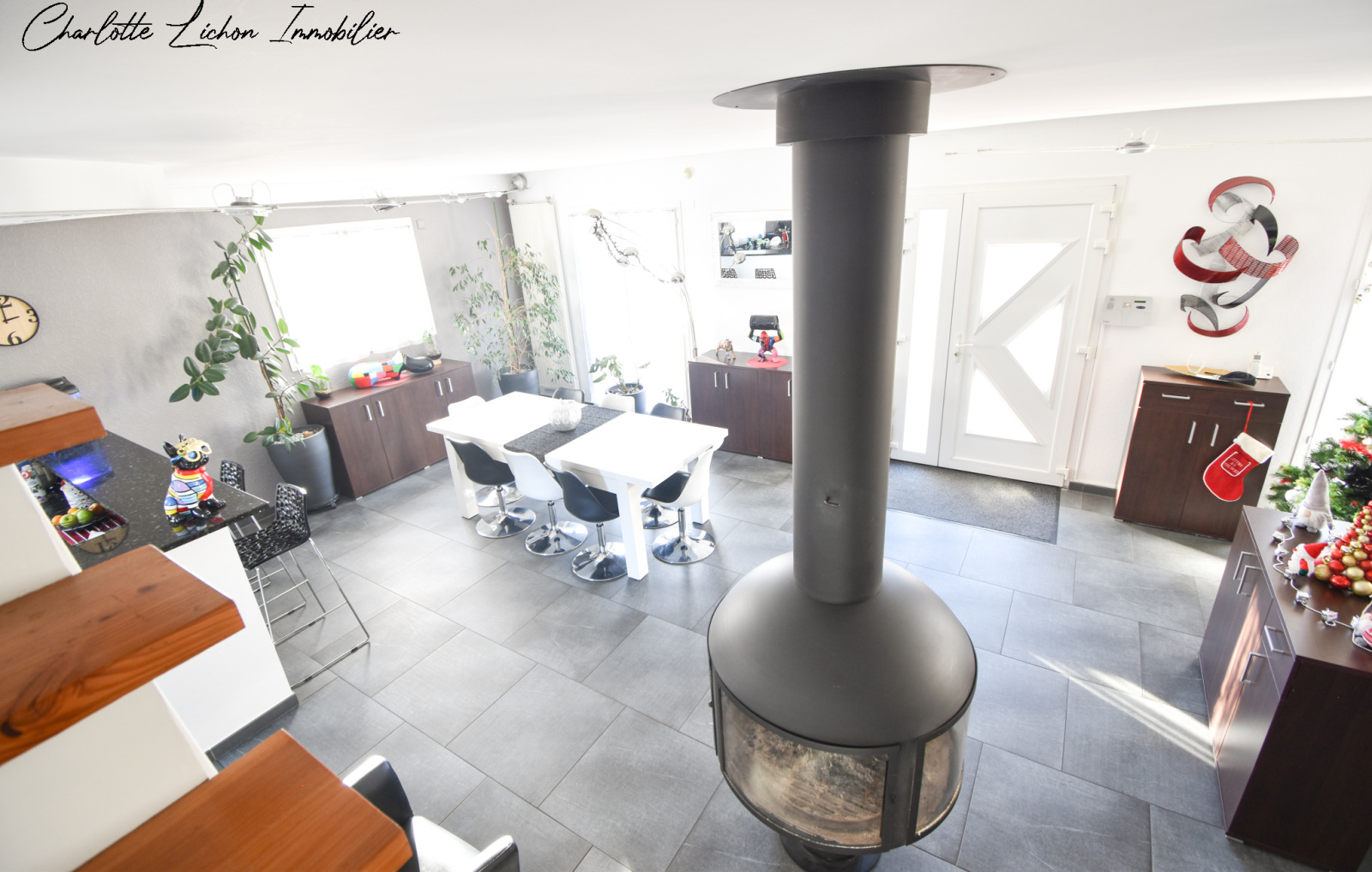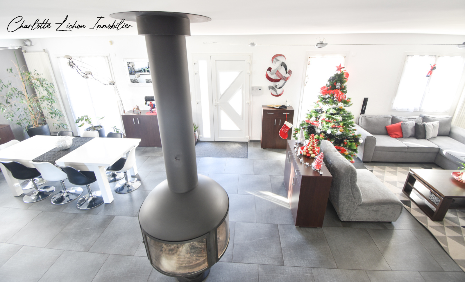 Poêle à bois, modernité des rénovations effectuées, ensemble harmonieux et chaleureux, cet espace jour aspire au partage et à la convivialité.