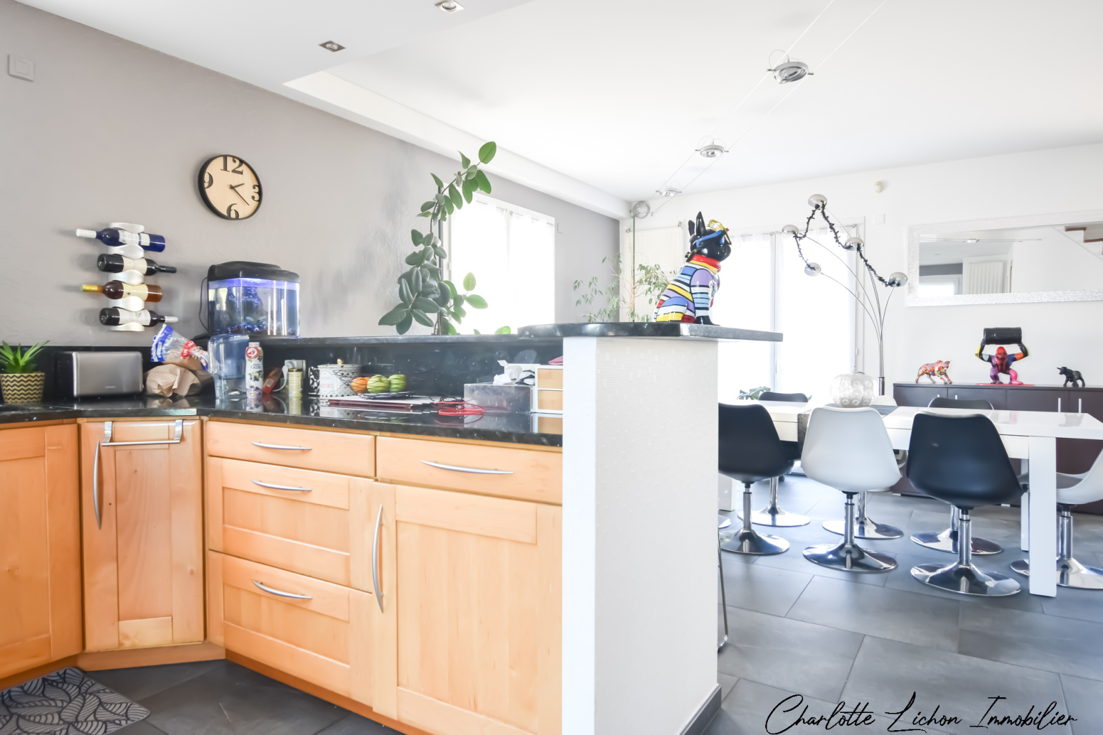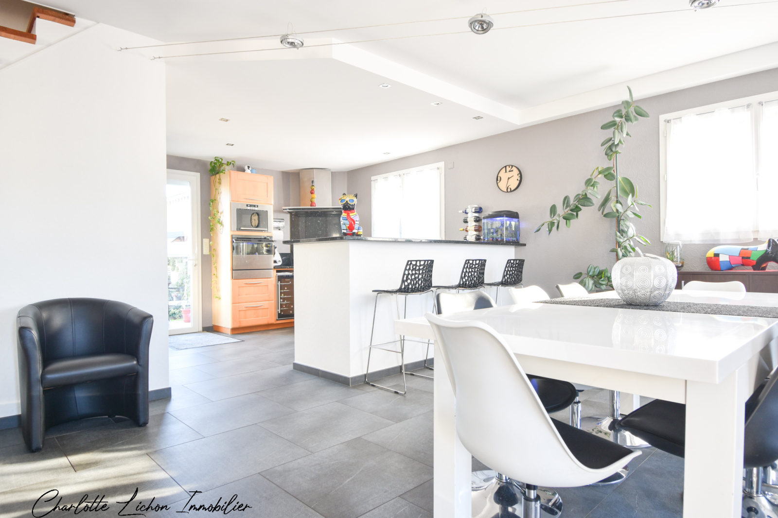 De niveau, une spacieuse pièce de vie avec cuisine ouverte aménagée et équipée de 68 m2 vous accueille.