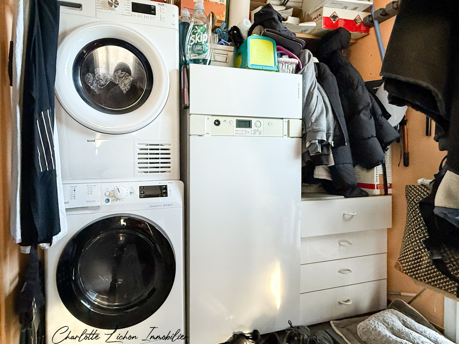 Sur ce niveau vous trouverez également un placard de rangement, un bureau de 8 m2, une buanderie de 4 m2, une salle de bains de 4.22 m2 et des toilettes indépendantes.