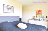 Une 2ème chambre, avec accès direct sur la terrasse de la piscine, sert actuellement de chambre parentale. Espace nuit et salle d’eau privative, c’est une surface totale de 20 m2 qui vous sera dédiée.