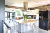 La cuisine, aménagée et équipée, est un véritable lieu de vie. Grâce à son îlot central, ses rangements, sa modernité et sa fonctionnalité, cet espace s’intègre parfaitement dans l’esprit de partage pensé par Karine et Guillaume.
