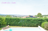 Espace salon, terrasse avec vue surplombant la piscine, coin repas, cuisine ouverte, chaque espace est propice au partage et à la convivialité.