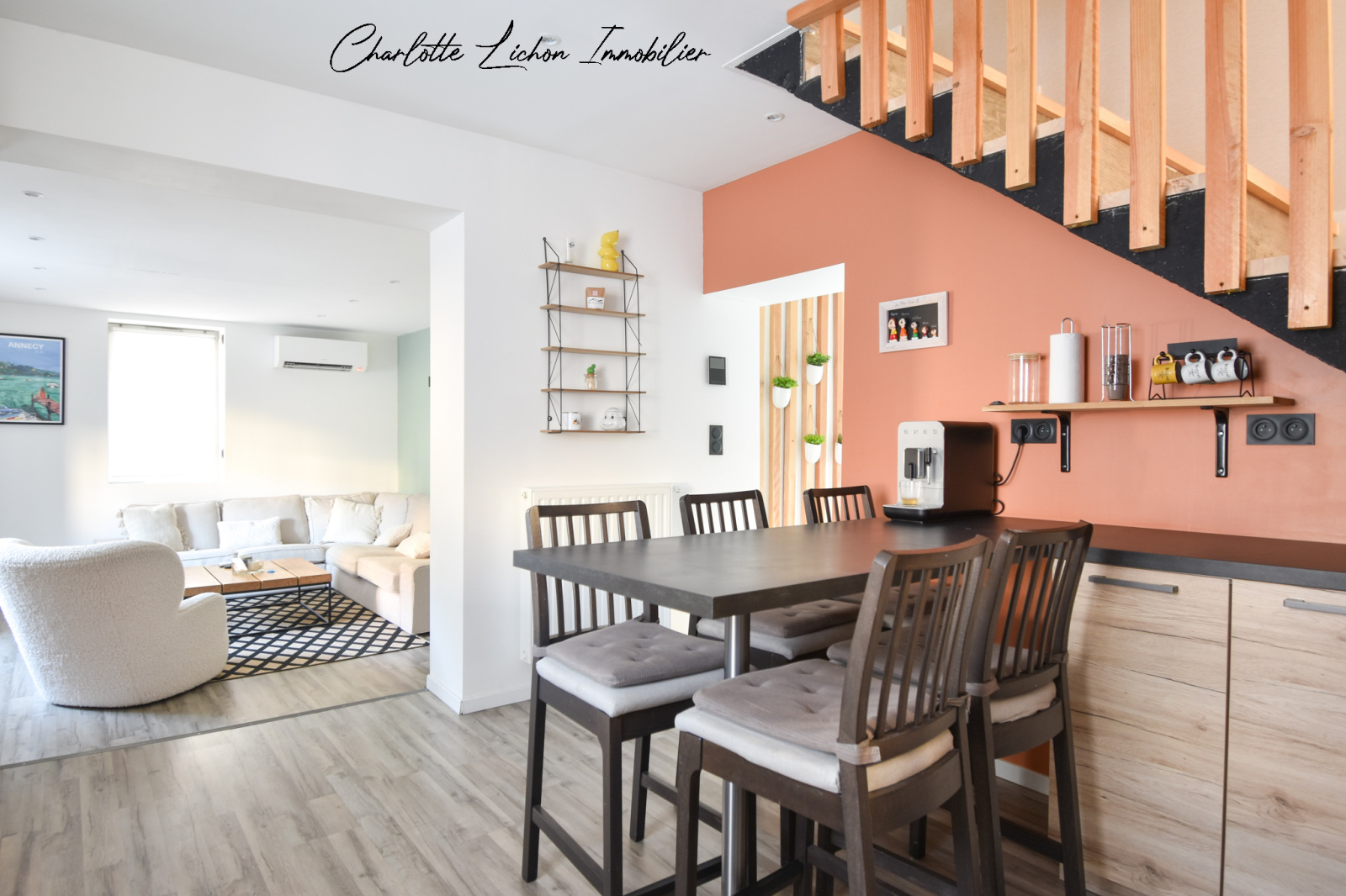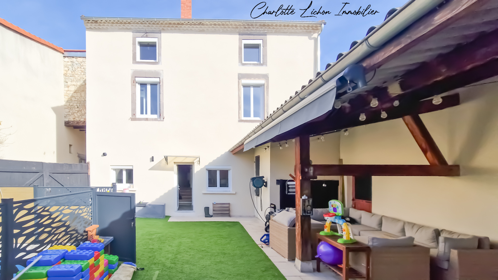 Avenue de la République, à proximité du centre-ville de Cournon, l’agence Charlotte Lichon Immobilier vous propose de venir découvrir une maison moderne et chaleureuse de plus de 200 m2.