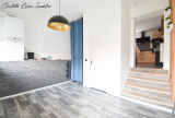 En gravissant quelques marches, vous arriverez sur l’espace jour, composé d’une cuisine aménagée et équipée de 15.61 m2 et d’un coin salon détente de plus de 18 m2 aspirant au partage et à la convivialité.